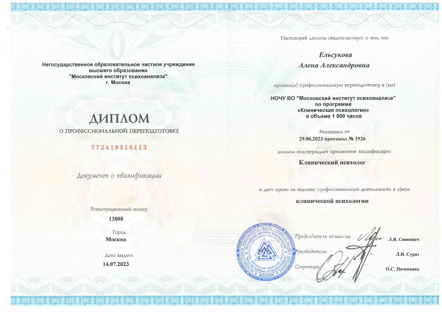 Здравствуйте. Я - Алена Александровна Ельсукова, клинический психолог.